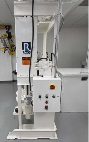 • An air over oil hydraulic lift system is included to raise and lower the top of the mixer with drives and mixing blades.